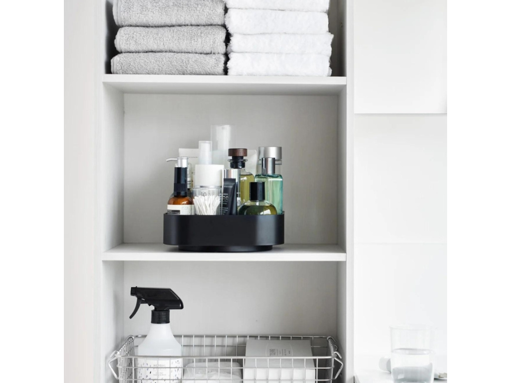 Úložný organizér Tower od značky Yamazaki je stylové a funkční úložné řešení, které kombinuje moderní design s praktičností. Tower je vyrobený z ABS plastu, a díky svému čistému vzhledu snadno zapadne do jakéhokoliv interiéru. Otočný mechanismus zajišťuje, že všechny uložené předměty jsou snadno dostupné, což zvyšuje pohodlí při používání. Tower lze využít v různých místnostech, například v koupelně na kosmetiku, v ložnici na šperky, v předsíni na klíče nebo v pracovně na kancelářské potřeby.