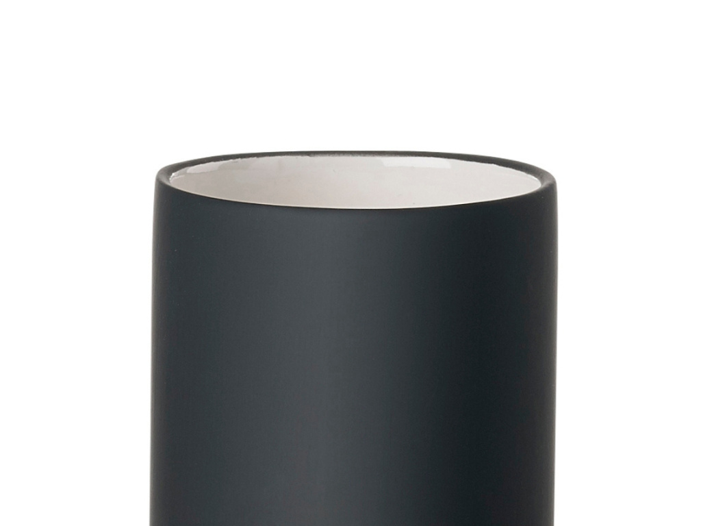Stojan na kartáčky ze série Solo v matně černé barvě je vyroben z porcelánu s povrchovou úpravou soft-touch, která vytváří příjemný a luxusní pocit na dotek. Jeho minimalistický design a jednoduchý tvar z něj činí elegantní prvek, který se vám bude snadno kombinovat s ostatními koupelnovými doplňky. Kolekce Solo zahrnuje také dávkovač na mýdlo, WC štětku a odpadkový koš, přičemž všechny produkty jsou dostupné ve více barevných provedeních.