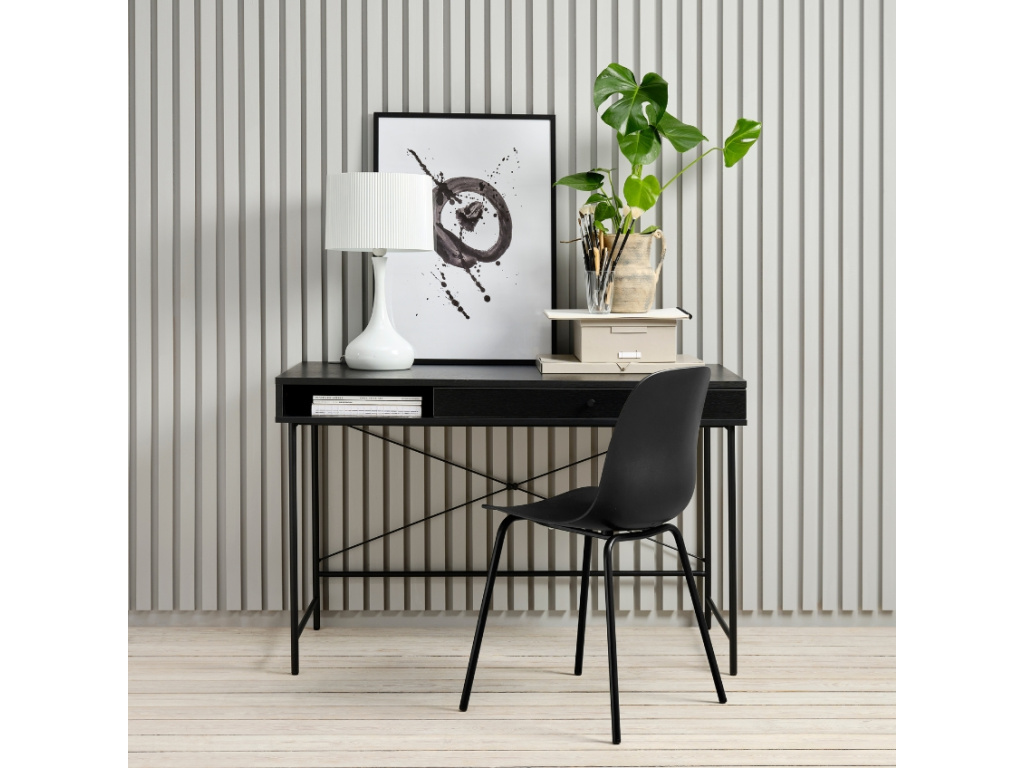 Hledáte-li minimalistický, zároveň funkční a elegantní stůl do vaší pracovny, je Pensacola od značky Unique Furniture právě pro vás. Již na první pohled vás upoutá deska, která je vyrobena z melaminu v dekoru černého dubu. Pensacola má dostatečně prostornou pracovní plochu a disponuje úložný prostorem v podobě zásuvky a otevřené police např. pro psací a kancelářské potřeby. Stůl Pensacola potěší především milovníky jednoduchého čistého designu a perfektně zapadne do moderních interiérů v minimalistickém stylu, ale skvěle vynikne i v interiéru s nádechem skandinávského stylu. A pokud toužíte po sjednoceném interiéru, s produkty ze série Pensacola jistě neuděláte chybu.