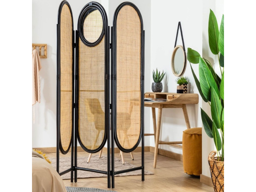 Podívám seČerný ratanový paraván Kave Home Lalita 150 x 180 cm se zrcadlem