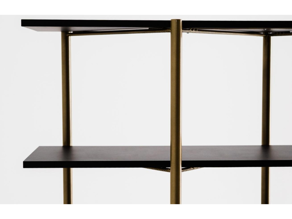 Dobře organizovaný prostor je základem pro pohodlný život. Regál z řady Raven je ideálním pomocníkem nejen pro zpestření vašeho interiéru, ale také jako úložný prostor. Police jsou vyrobené z laminátu v černém laku, které v kombinaci se zlatě lakovanou konstrukcí vytváří minimalistický a čistý design. V řadě Raven najdete nejen regály, ale také konferenční či toaletní stolky. Doporučujeme kombinaci více prvků z řady Raven. Dolaďte svůj interiér k dokonalosti.