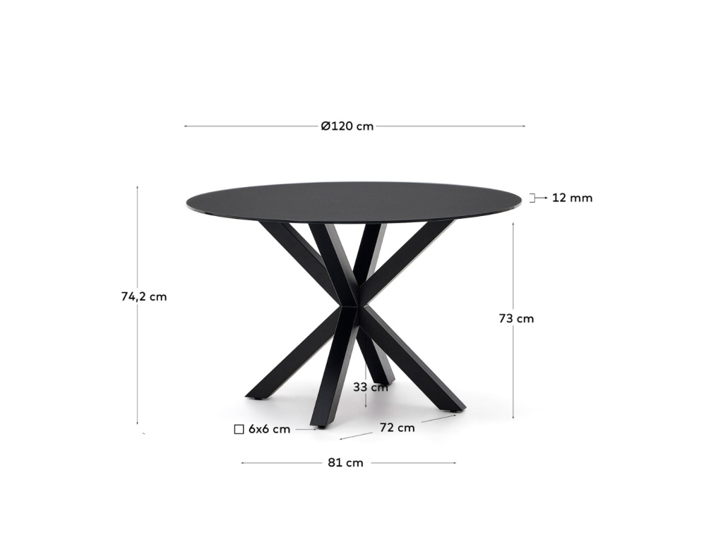 Krásný a nadčasový kulatý jídelní stůl Kave Home Argo vás na první pohled zaujme svým originálním a propracovaným designem. Jeho podnož je vyrobena z černě lakované oceli a má zajímavý tvar připomínající hvězdu. Zajišťuje perfektní stabilitu a navíc každého na první pohled zaujme. Desku tvoří černé tvrzené sklo se speciální matnou povrchovou úpravou, díky které se nemusíte bát, že by na ní zůstávaly nevzhledné otisky prstů. Tento jídelní stůl se bude vyjímat zejména v rustikálních a industriálních interiérech.