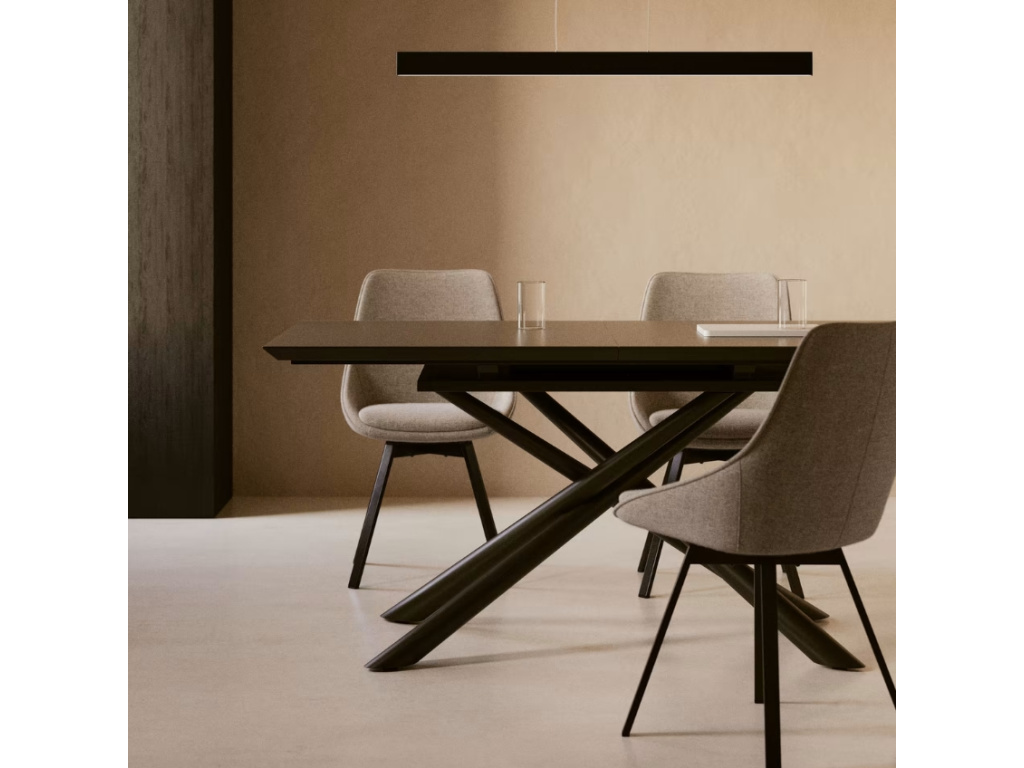 Designový jídelní stůl Kave Home Theone si zamilujete na první pohled. Uchvátí vás svou skleněnou deskou a v kombinaci s černě lakovanou kovovou podnoží bude perfektně ladit do moderního interiéru. Příjemnou vlastností je možnost rozložit stůl až do délky 210 cm a pohodlně tak pohostit i více hostů. Designově zakroucená podnož dodává stolu na originalitě a osobitosti. Stůl se skvěle hodí do komerčních i nekomerčních prostor.