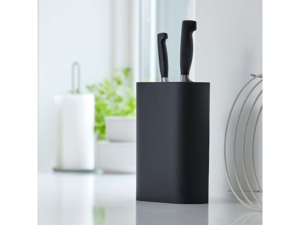 Udržujte své kuchyňské nože organizované a chráněné s tímto sofistikovaným řešením od Zone Denmark. Stojan v univerzální černé barvě je vybaven vložkou z jemných plastových štětin, která umožňuje bezpečné a flexibilní uložení nožů různých velikostí a tvarů. Jeho minimalistický design, navržený studiem VE2, a kompaktní rozměry z něj činí ideální doplněk pro moderní kuchyně, které propojují funkčnost s estetikou. Dostupný je více barevných variantách.