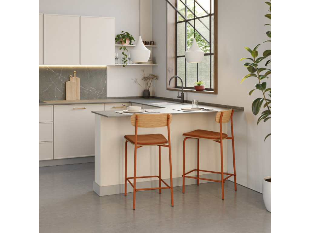 Barová židle Marckeric Adriana s čalouněným sedákem se pyšní kombinací dřevěného dekoru a zajímavého odstínu červené barvy. Elegantně tvarovaná konstrukce se štíhlými liniemi přinese k vašemu barovému stolu nebo kuchyňskému ostrůvku svěží závan moderního designu. A pokud máte doma také klasický jídelní stůl, můžete celý prostor sladit a pořídit si ji také v menším jídelním provedení! V náručí těchto kousků si vychutnáte každé jídlo v pohodlí.