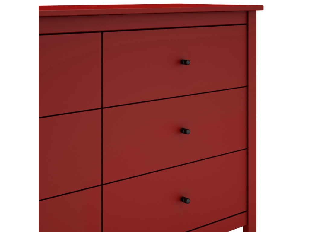 Elegantní komodu Marckeric Misti z masivního borovicového dřeva si zamilujete. Červená barva vytváří atraktivní vzhled, díky čemuž získává skříň na unikátnosti a stylu. Bude skvělým doplňkem nejen vaší ložnice. Praktický úložný prostor zajišťuje hned několik zásuvek. Doporučujeme tuto komodu kombinovat také s ostatními produkty ze stejné kolekce.