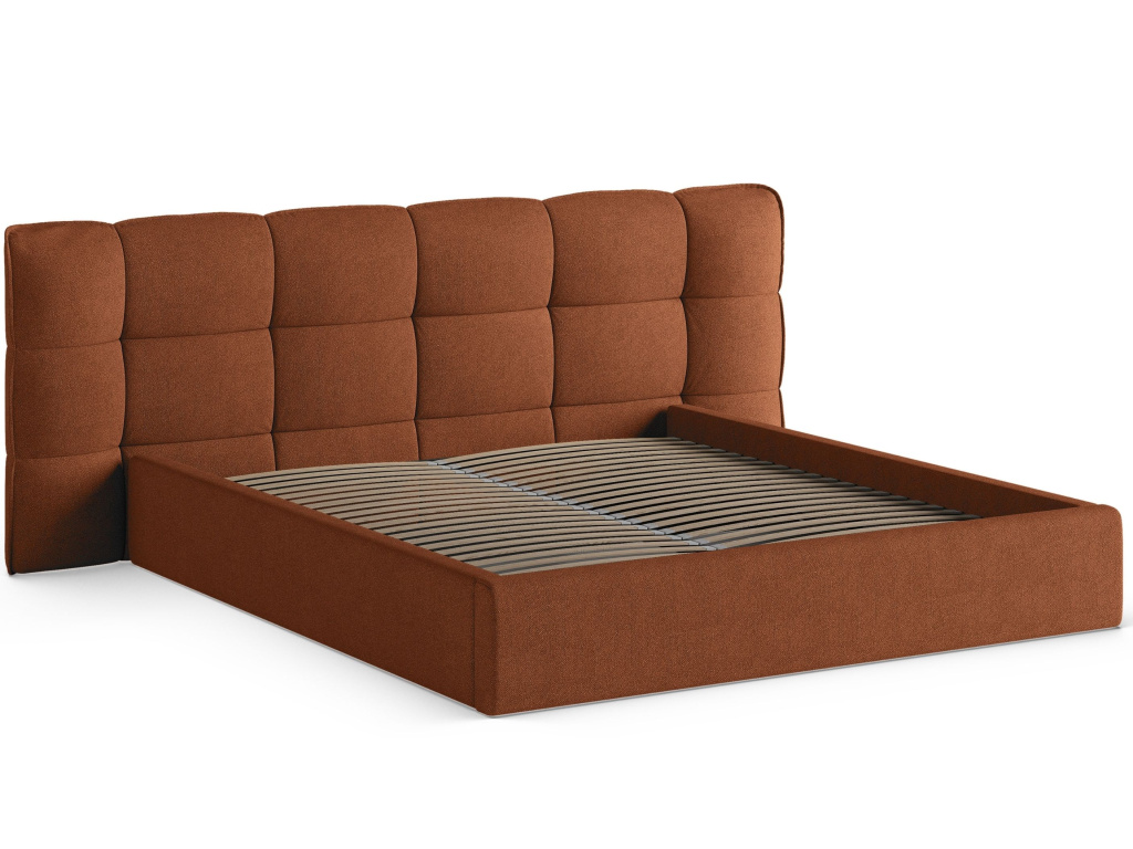 Červená bouclé dvoulůžková postel Eric 160 x 200 cm s úložným prostorem