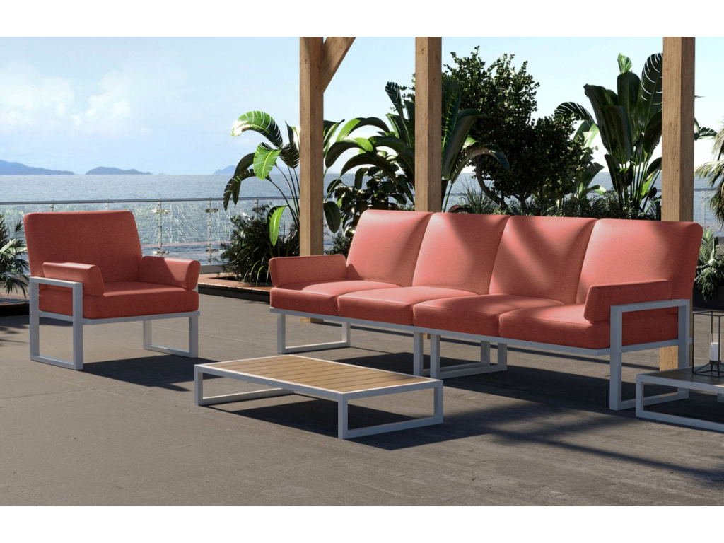 Červená čtyřmístná zahradní pohovka MESONICA Soledo s bílou podnoží 270 cm