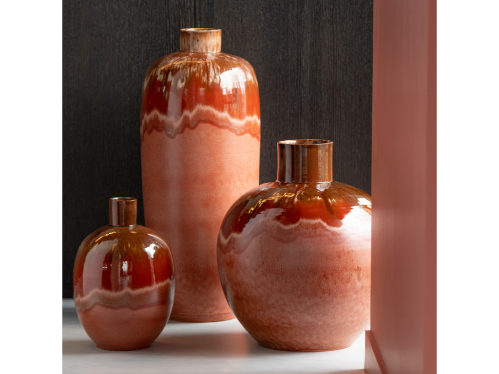Pokud si potrpíte na výrazných barevných doplňcích, bude tato keramická váza Akone od značky J-line přesně pro vás. Tato podlouhlá váza vás zaručeně osloví svoji nápaditou glazurou v odstínech červené. Poslouží skvěle pro umístění živých i umělých rostlin nebo dekoračních travin. Váza je součástí produktové řady Akone, od níž u nás na webu naleznete i další designové kousky.