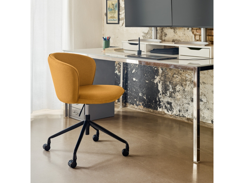 Vytvořte si stylové zázemí kanceláře s elegantní konferenční židlí Add od značky Teulat. Díky ergonomickému zaoblenému opěradlu se židle perfektně přizpůsobí přirozenému zakřivení vašeho těla. Vkusné čalounění příjemnou, recyklovanou, polyesterovou látkou je doplněno kontrastní černě lakovanou, kovovou podnoží se čtyřmi rameny zakončenými kolečky. Ty vám usnadní každodenní manipulaci s židlí. Pohodlí při práci či studiu vám také zajistí široký, otočný sedák s nastavitelnou výškou.