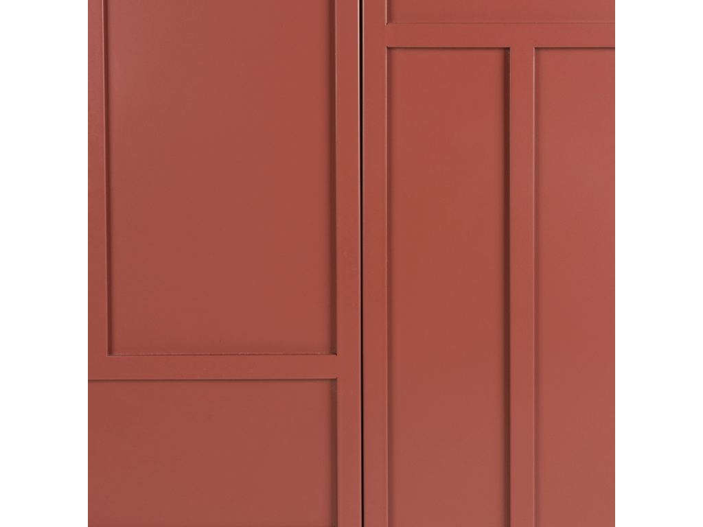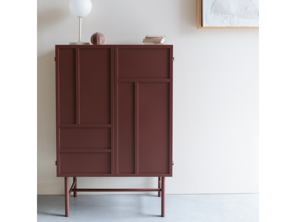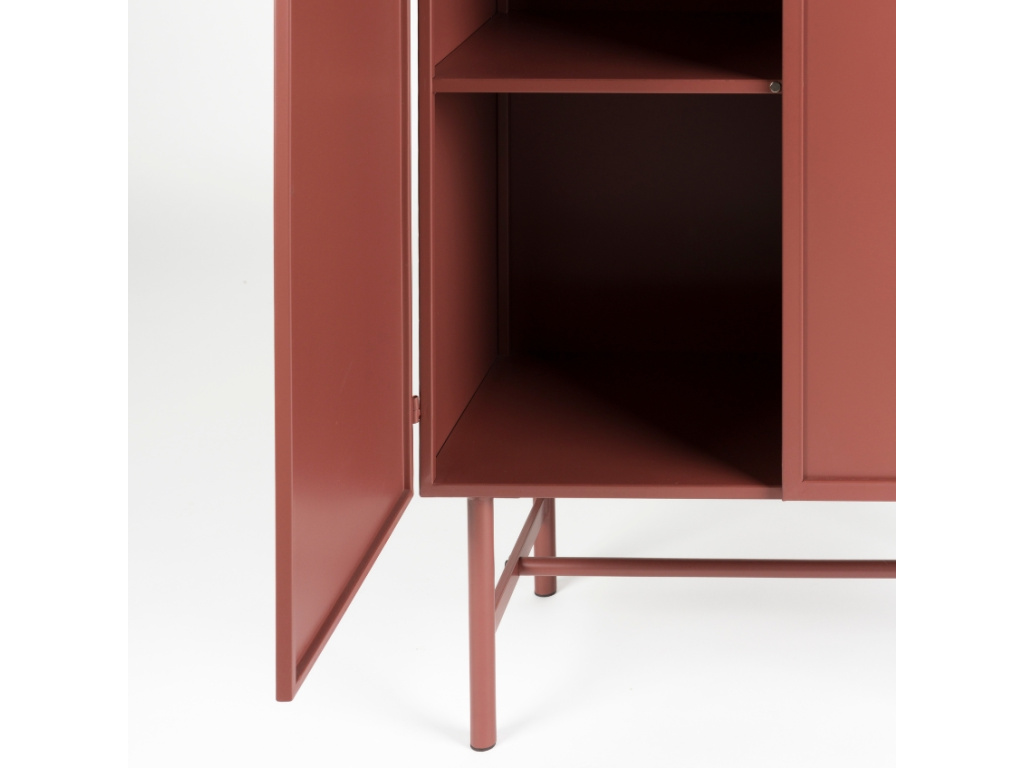 Vyšší komoda DAVIS v atraktivním červeném provedení je neotřelým designovým kouskem, který vdechne každému interiéru energii a osobitý styl. Její kovová konstrukce působí odlehčeně, zatímco reliéfní členění dvířek dodává celé skříni strukturu a vizuální dynamiku. Úložný prostor v podobě dvou uzavřených polic nabízí dostatek místa na dokumenty, nádobí či drobnosti každodenního života. Díky svému industriálnímu charakteru a výrazné barvě se Davis skvěle hodí do moderních i eklektických interiérů – jako solitér i v kombinaci s dalšími kousky v podobném duchu.