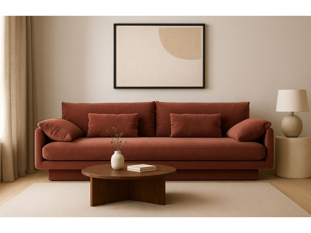 Čtyřmístná pohovka Torino je elegantní a pohodlná volba pro každodenní relaxaci. Její nadčasový design spojuje klasickou siluetu s moderními proporcemi a měkkými liniemi. Výrazným prvkem jsou polstrované pohyblivé područky, které zajišťují variabilní pohodlí a spolu s extra měkkými polštáři vytvářejí příjemné zázemí pro odpočinek. Sedák s vysoce elastickou pěnou a vlnovými pružinami poskytuje stabilní oporu i dlouhodobé pohodlí. Potah tvoří sametová látka Casino, která zaujme jemným leskem, mimořádnou hebkostí a sofistikovaným vzhledem. Díky odolnosti proti oděru, poškrábání i skvrnám se navíc snadno udržuje a skvěle se hodí i do domácností s domácími mazlíčky. Kolekce Torino se skvěle hodí do moderních, skandinávských i urban interiérů. Doplnit ji můžete o ladící konferenční stolek, měkké polštáře, hřejivý pléd nebo elegantní vázu s květinami.