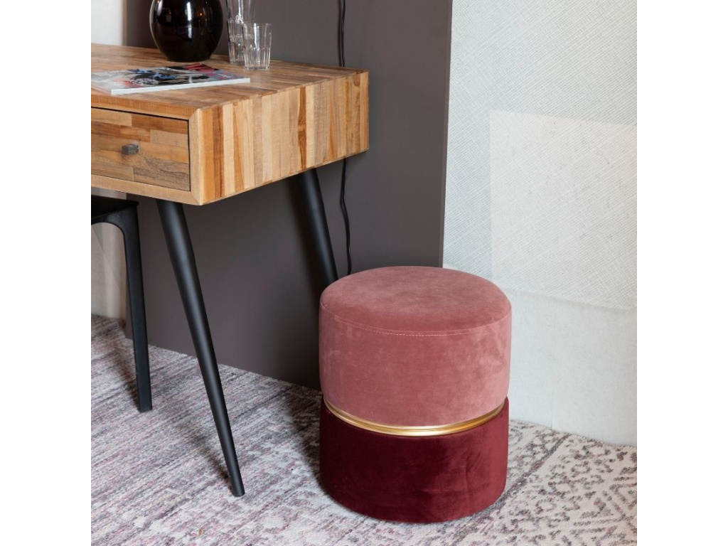 Krásná taburetka WLL Bubbly zaujme svým unikátním minimalistickým vzhledem. Sametové čalounění ve dvou odstínech červené bude ladit s jemnými odstíny barev. Elegantnost taburetky podněcuje kovový kroužek ve zlaté barvě. Měkký sedák zajistí pohodlí i pro nečekané návštěvy.