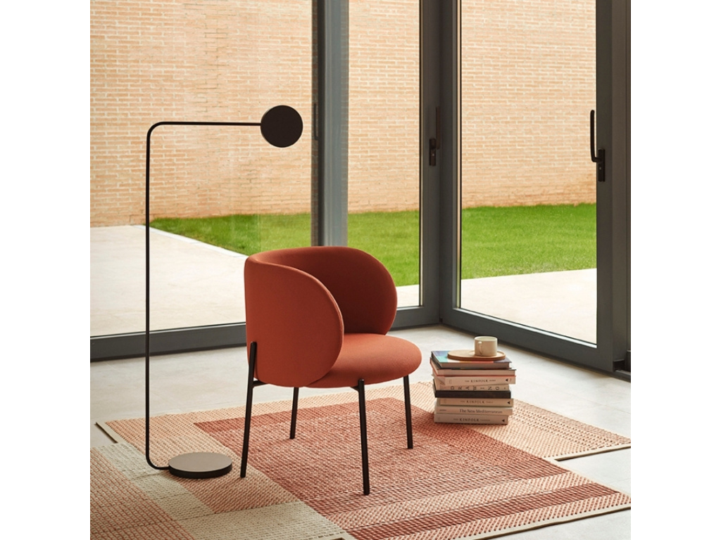 Designové křeslo Teulat Mogi zaujme na první pohled svou jedinečností. Mogi je elegantní křeslo s nadčasovými tvary. Jeho tvar vyjadřuje pocit klidu a pohodlí. Čalouněné je látkou Felicity de Gabriel, což je jednoduchý, polyesterový, propracovaný, designový materiál. Jeho design je definován organickými řádky, které hravě prozkoumávají nová a zářívá perspektiva z hlediska struktury. Tento unikátní celek dotváří černě lakovaná kovová podnož, která zvýrazňuje celou podstatu tohoto křesla. Zamilujte se i vy do křesla Mogi. Křeslo se díky certifikaci a normě nehořlavosti (EN 1021 1&2) skvěle hodí do komerčních prostor jako jsou kavárny, hotely apod. Radost samozřejmě udělá také v domácím prostředí.