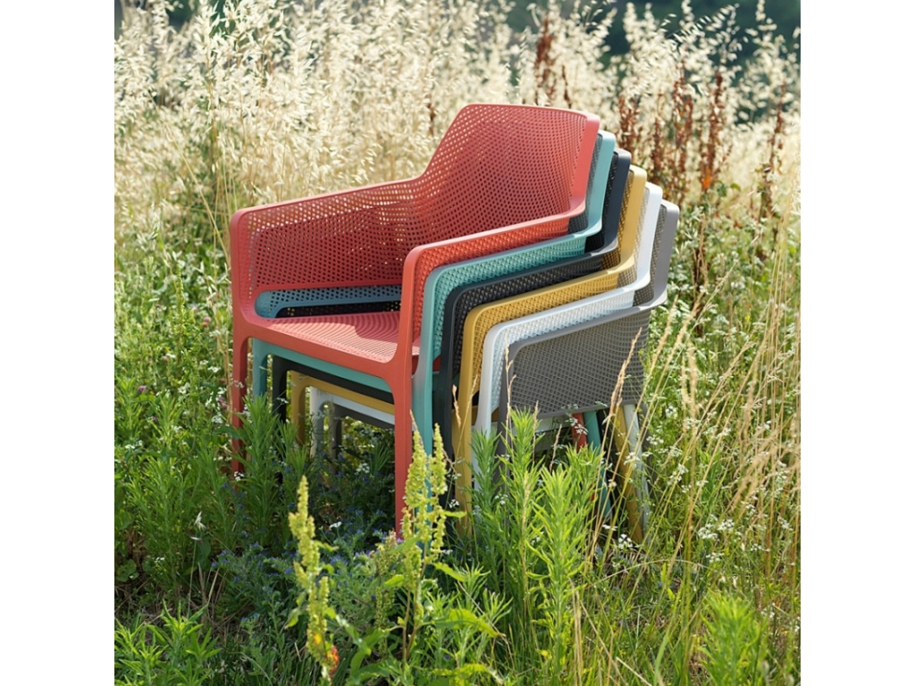 Díky použitému odolnému materiálu oceníte moderní zahradní křeslo Net nejen v interiéru, ale také na vaší terase či zahradě. Jednoduché barevné provedení a působivý design dělá z křesla nadčasový kousek, který rozhodně neomrzí. Je dostupné v několika barevných variantách a doplnit ho můžete nábytkem nebo podsedákem ze stejné kolekce. Příjemným bonusem jsou praktické područky, které pouze umocní váš odpočinek. Užívejte si komfort a styl křesla Net jak u vás doma, tak i v komerčních prostorech.