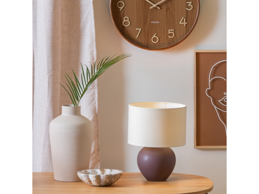 Stolní lampa Taper v nadčasovém designu jen tak neomrzí a dokáže vytvořit u vás doma příjemnou atmosféru. Její keramická podstava s matným povrchem v teplém červenohnědém odstínu a látkové stínidlo béžové barvy spolu perfektně ladí a snadno k nim půjdou kombinovat další doplňky včetně různých materiálů. Lampu umístěte třeba na komodu či do regálu v obývacím pokoji vedle knížek a sošek nebo na noční stolek v ložnici. K dispozici je ve více barevných variantách.