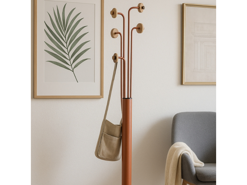 LEO je víc než jen věšák – je to tichý designový akcent, který propojuje estetiku s funkční lehkostí. Jeho štíhlá, čistá silueta a promyšlené proporce z něj dělají ideálního společníka do vstupních hal, kanceláří i veřejných prostor. Stabilní kovová základna v kontrastu s jemně zaoblenými dřevěnými háčky vytváří vizuální harmonii, která nikdy nepůsobí rušivě. Věšák Leo je důkazem toho, že i technický prvek může působit přirozeně a s elegancí zapadnout do každodenního prostředí.