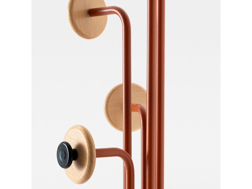 LEO je víc než jen věšák – je to tichý designový akcent, který propojuje estetiku s funkční lehkostí. Jeho štíhlá, čistá silueta a promyšlené proporce z něj dělají ideálního společníka do vstupních hal, kanceláří i veřejných prostor. Stabilní kovová základna v kontrastu s jemně zaoblenými dřevěnými háčky vytváří vizuální harmonii, která nikdy nepůsobí rušivě. Věšák Leo je důkazem toho, že i technický prvek může působit přirozeně a s elegancí zapadnout do každodenního prostředí.