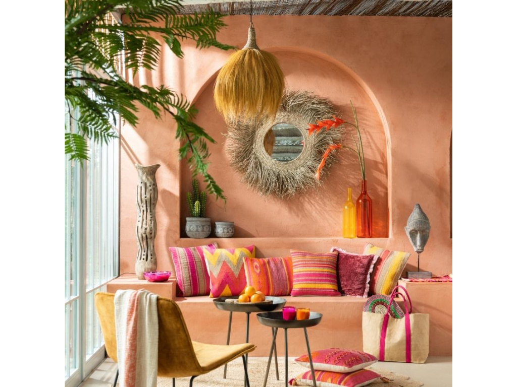 Polštář Ebby od oblíbené značky J-line přímo křičí – BOHO! Nejen díky barvám, ale i jeho vzoru snadno zapadne do každého orientálně laděného interiéru i dětského pokojíku. Nakombinujte doplňky více dalších barev i vzorů a vašim domovem bude sálat radost a teplo orientu.