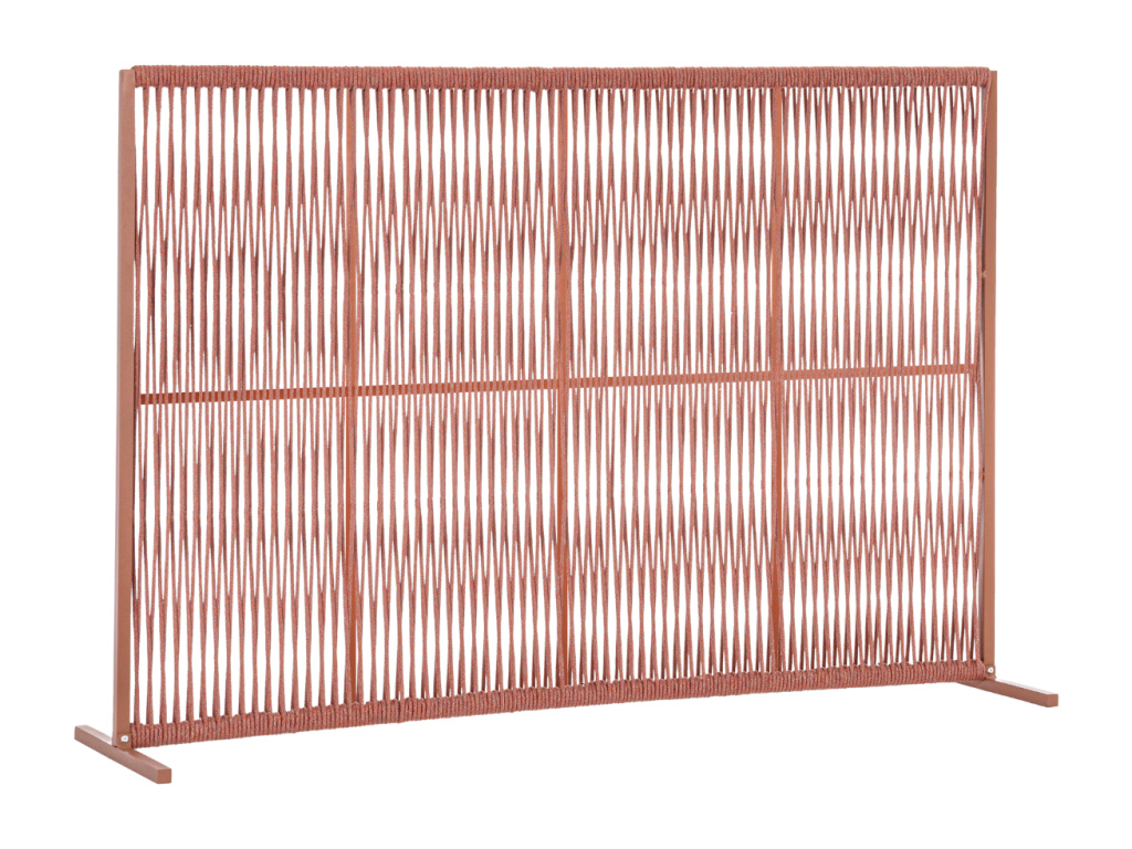 Paraván Paxson od značky Bizzotto je skvělou volbou pro optické členění prostoru a nevšední dekoraci. Tento paraván využijete především v exteriéru pro optické rozdělení odpočinkové nebo hrací zóny. Pokud byste ale potřebovali ozvláštnit svůj interiér, určitě neuděláte chybu. Rám z lakovaného hliníku je vypleten olefinovou tkaninou, která se hojně využívá pro čalounění do exteriéru, a to pro svou odolnost a pevnost. Tento paraván lze skvěle kombinovat i s jinými paravány této řady Paxson.