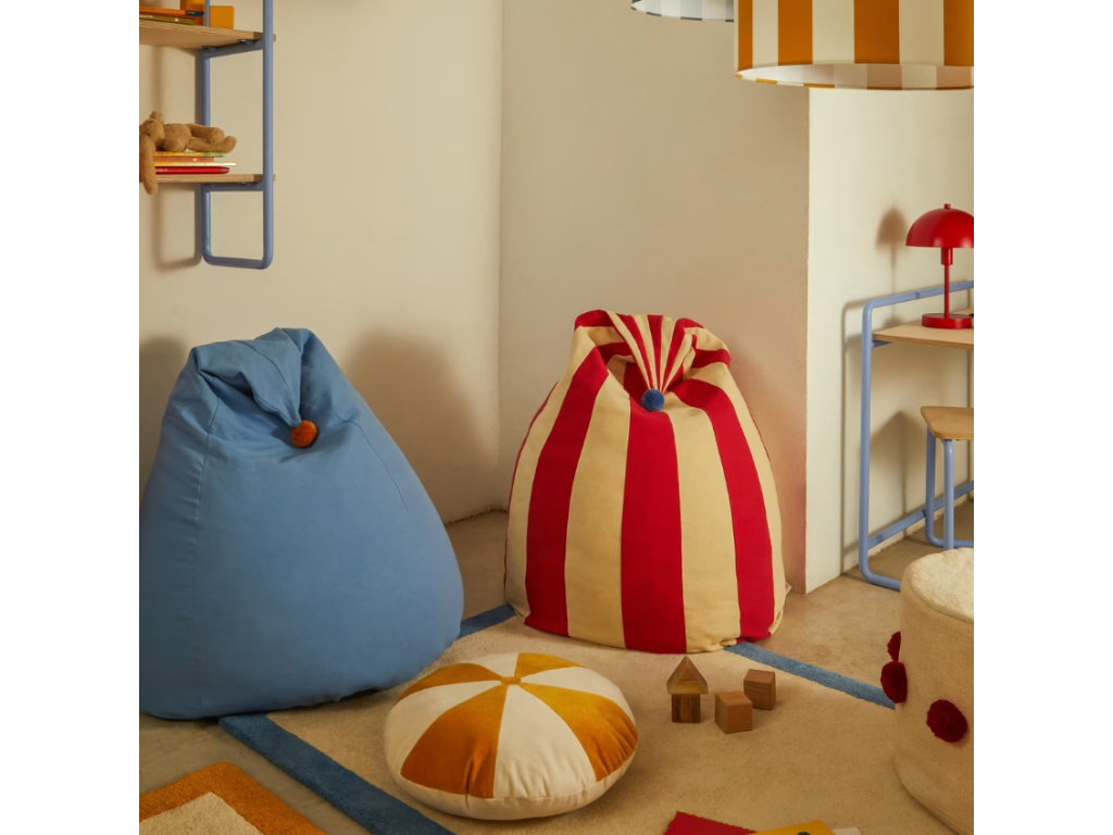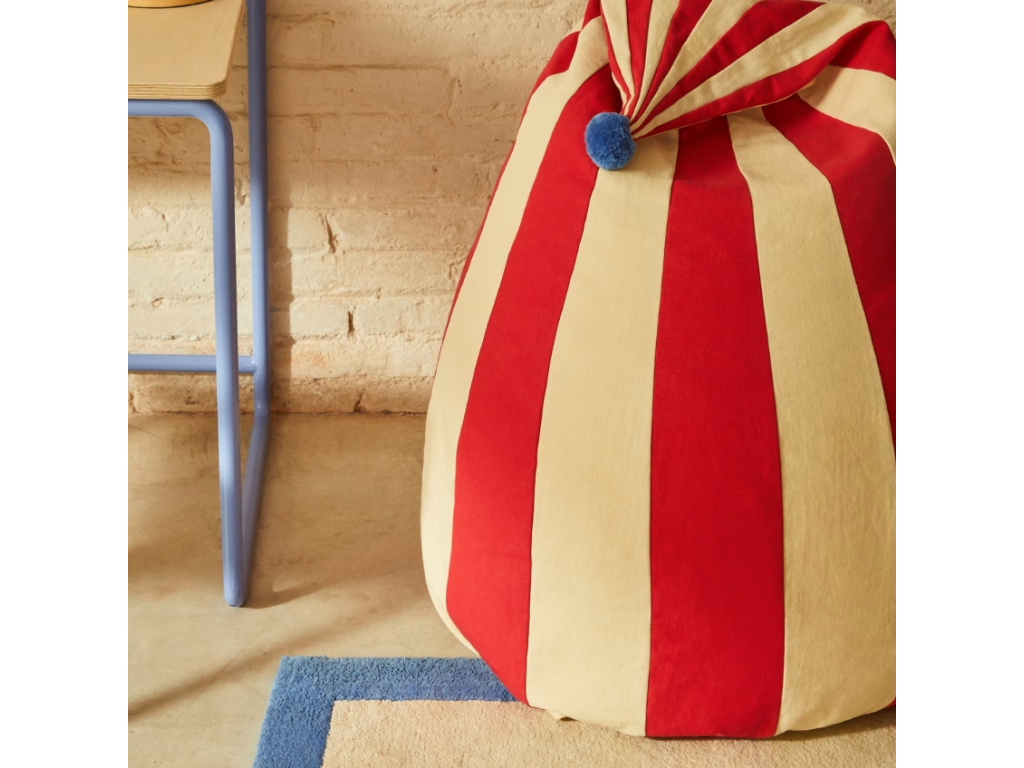 Sedací pytel Kave Home Olvi bude skvělým doplňkem každého dětského pokojíčku. Děti si v jeho společnosti mohou číst, dívat se na televizi i jen tak odpočívat. Dostupný je v modré barvě i v červeném pruhovaném provedení – obě zdobí roztomilá hravá bambulka. Bude skvělým dárkem, který si vaše ratolesti velmi rychle oblíbí.
