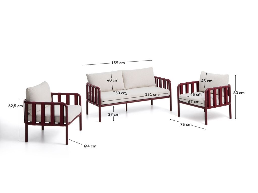 Sestava Omala vnáší do exteriéru osvěžující estetiku a nekompromisní komfort díky precizně tvarované hliníkové konstrukci. Subtilní linie v kombinaci s měkkým polstrováním definují moderní pojetí odpočinku, které hravě odolává vlivům počasí i času. Je to ideální volba pro proměnu terasy v sofistikovaný venkovní salonek v současném evropském stylu, kde hraje prim lehkost a čistý design.
