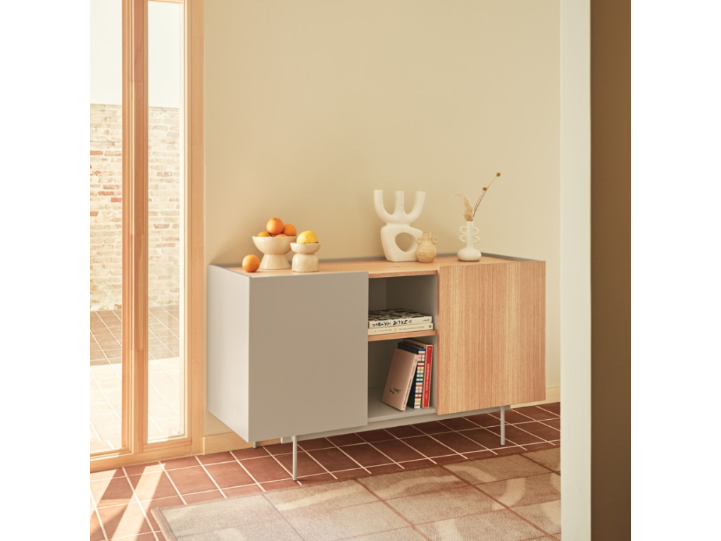 Najděte místo pro všechno, na čem vám záleží. Moderní bezúchytková komoda Otto od španělské značky Teulat se stane perfektním útočištěm vašich věcí. Pokud hledáte praktickou komodu a zároveň preferujete minimalistický, čistý design, našli jste svého favorita. Základem komody jsou kvalitní lakované MDF a lakovaná kovová podnož, které zajišťují pevnou a stabilní konstrukci. Dřevěná dvířka a jemné detaily z dubové dýhy vytvářejí zajímavý kontrast. Můžete se těšit na prostorné šuplíky i police, které vám umožní zorganizovat si věci a pomůžou udržovat pořádek. Přestože je komoda bez úchytek, můžete se spolehnout na praktický systém Push to open, který zajistí snadné otevírání. Potěší vás jistě také systém Soft Close, díky kterému se dvířka i šuplíky zavírají pomalu a tiše. Komodu nabízíme ve třech barevných provedeních.