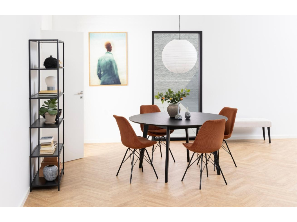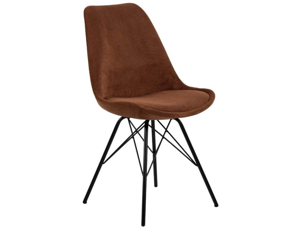 Elegantní a stylová jídelní židle Erisa bude krásným a pohodlným doplňkem vaší jídelny. Zajímavě řešená podnož je vyrobená z černě lakovaného kovu a díky tenkým liniím působí lehce a elegantně. Pohodlný tvarovaný sedák a zádová opěrka je čalouněná rezavě červenou manšestrovou látkou, která židli dodá komfort a styl. Židle Erisa se hodí do moderních jídelen.