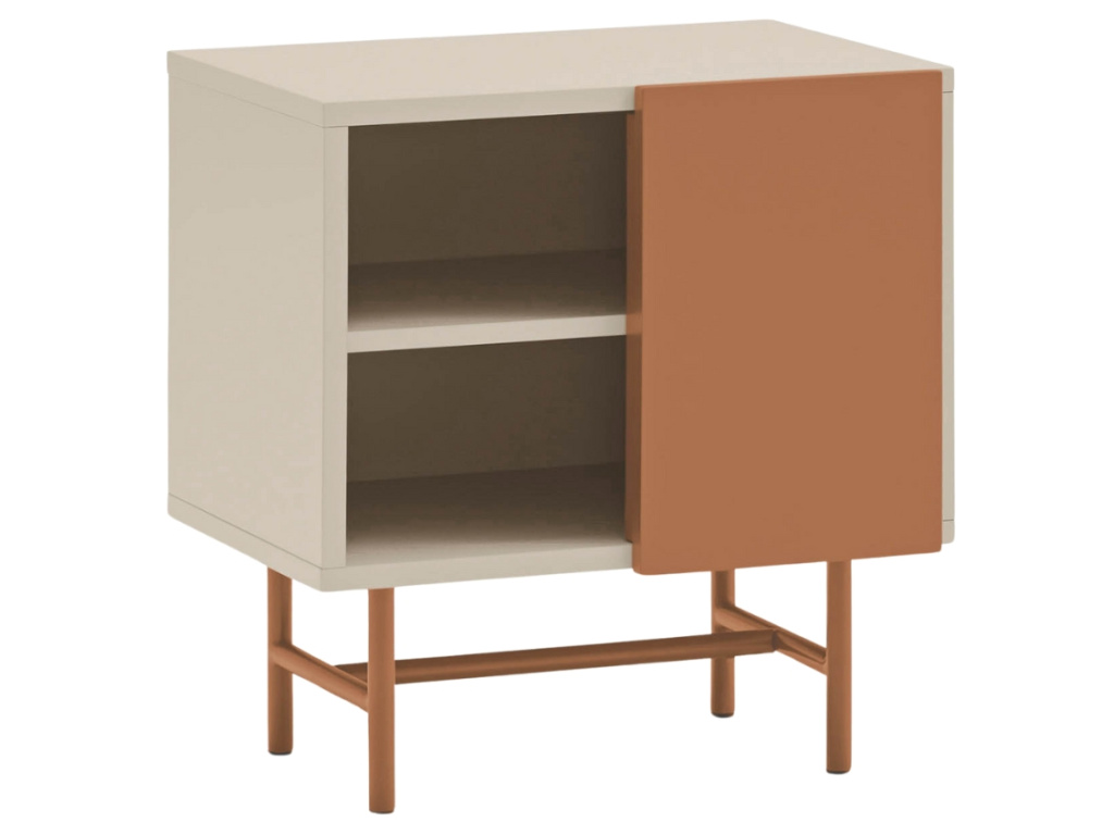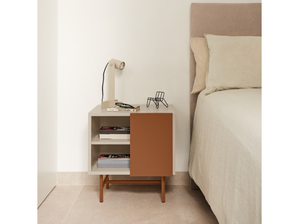 Minimalistický noční stolek Nube od španělské značky Teulat vás oslní elegantním designem i praktickým uspořádáním věcí. Úložný prostor stolku je tvořen dvojicí prostorných polic, které můžete zakrýt posuvnými dvířky. Ať už se tak rozhodnete využít úložný prostor na cokoliv, můžete se spolehnout na diskrétní ukrytí vašich pokladů před zraky ostatních. Díky bezúchytkovému provedení vyniknou jednoduché a čisté linie stolku. Použité lakované MDF vás jistě potěší snadnou údržbou a vysokou odolností. Stolek, stejně jako další komody a TV stolky ze série Inari, nabízíme ve třech různých barevných provedeních.