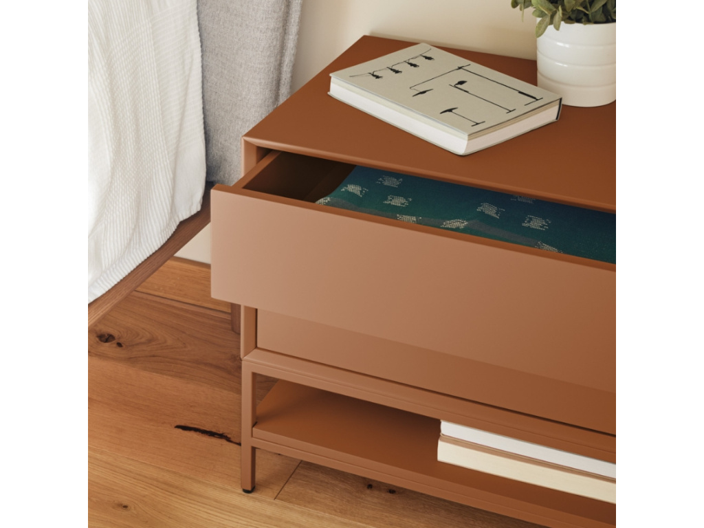Hledáte kousek, který bude vypadat skvěle, ale nebude na sebe zbytečně strhávat pozornost? Noční stolek ze série Platt od španělské značky Teulat je přesně ten typ nábytku, který si zamilujete pro jeho jednoduchost, praktičnost a nadčasový šmrnc. Minimalistické linie a chytré rozvržení úložného prostoru dělají z Plattu parťáka, který vedle postele rozhodně oceníte. Kromě dvou zásuvek najdete ve spodní části také praktickou otevřenou polici, která se skvěle hodí třeba na knihy nebo časopisy. A jestli vám stačí méně úložného prostoru, můžete sáhnout po závěsné variantě nočních stolků, která je tvořena jednou zásuvkou.