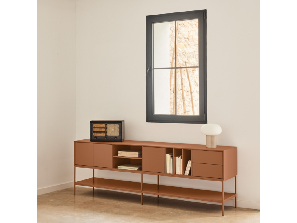 Hledáte kousek, který bude vypadat skvěle, ale nebude na sebe zbytečně strhávat pozornost? TV stolek ze série Platt od španělské značky Teulat je přesně ten typ nábytku, který si zamilujete pro jeho jednoduchost, praktičnost a nadčasový šmrnc. Minimalistické linie, jemné vertikální drážky a chytré rozvržení úložného prostoru dělají z Plattu parťáka, který zapadne téměř kamkoli. Ať už ho postavíte pod televizi, nebo na něj vystavíte oblíbené dekorace, bude působit elegantně a přirozeně. Uvnitř najdete dostatek místa na všechno potřebné – od techniky až po drobnosti, které nechcete mít na očích. A díky promyšlenému řešení kabeláže zůstane váš obývák vždy krásně uspořádaný!