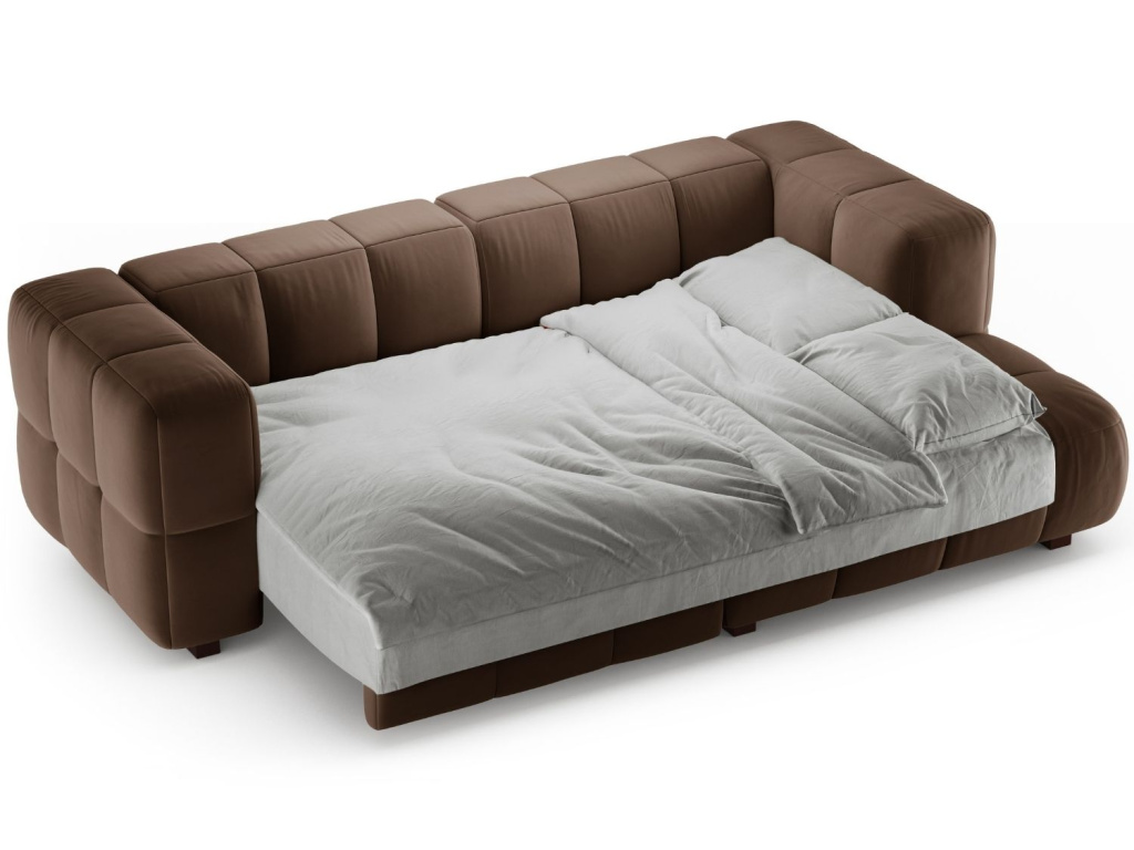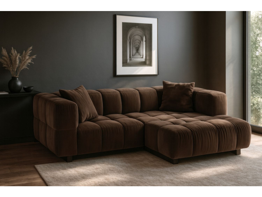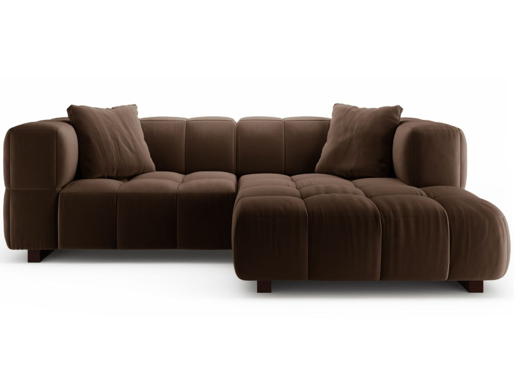 To chciČokoládově hnědá sametová rozkládací pohovka Puma 260 cm, pravá