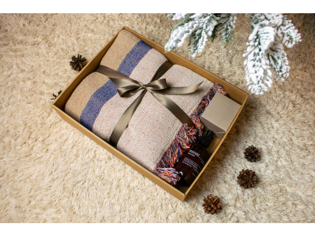 Vánoční balíček Hřejivé objetí přináší vše, co potřebujete pro pohodové chvíle doma během chladných dnů. Tento balíček spojuje tři skvělé produkty, které vytvoří útulnou atmosféru. Krém na ruce Meraki zanechá vaše ruce jemné a voňavé. Vonná svíčka Kave Home naplní místnost osvěžujícími citrusovými tóny, které povzbudí vaše smysly. A barevný pletený pléd od značky Bloomingville vás zahřeje svou měkkou texturou a krásným designem. Tento balíček je ideální dárek pro všechny, kteří si chtějí užít klid a pohodu.