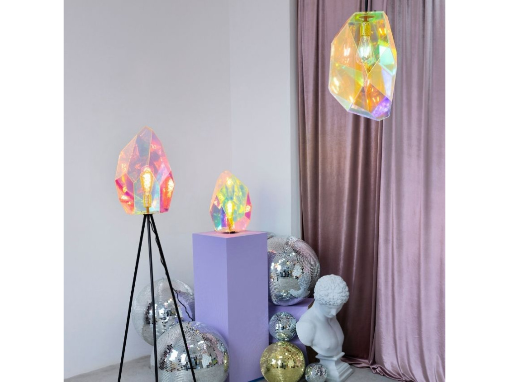 Naprosto nepřehlédnutelné. Tak by se jednoduše dalo popsat unikátní závěsné světlo Diamond Deer od značky Bold Monkey. Již při prvním pohledu si všimnete měnících se barev plastového stínidla, které způsobují úžasnou hru lámání světla a zrcadlení, což ve vás vyvolá příjemné pocity. Světlo je zavěšené na 130 cm dlouhém textilním kabelu s černě lakovaným kovovým zavěšením. Toto jedinečné světlo ve stylu art deco si najde místo u všech, kdo se nebojí lehce extravagantního designu. Objevte krásu duhových tónů světla ve společnosti světel ze série Diamond Deer.