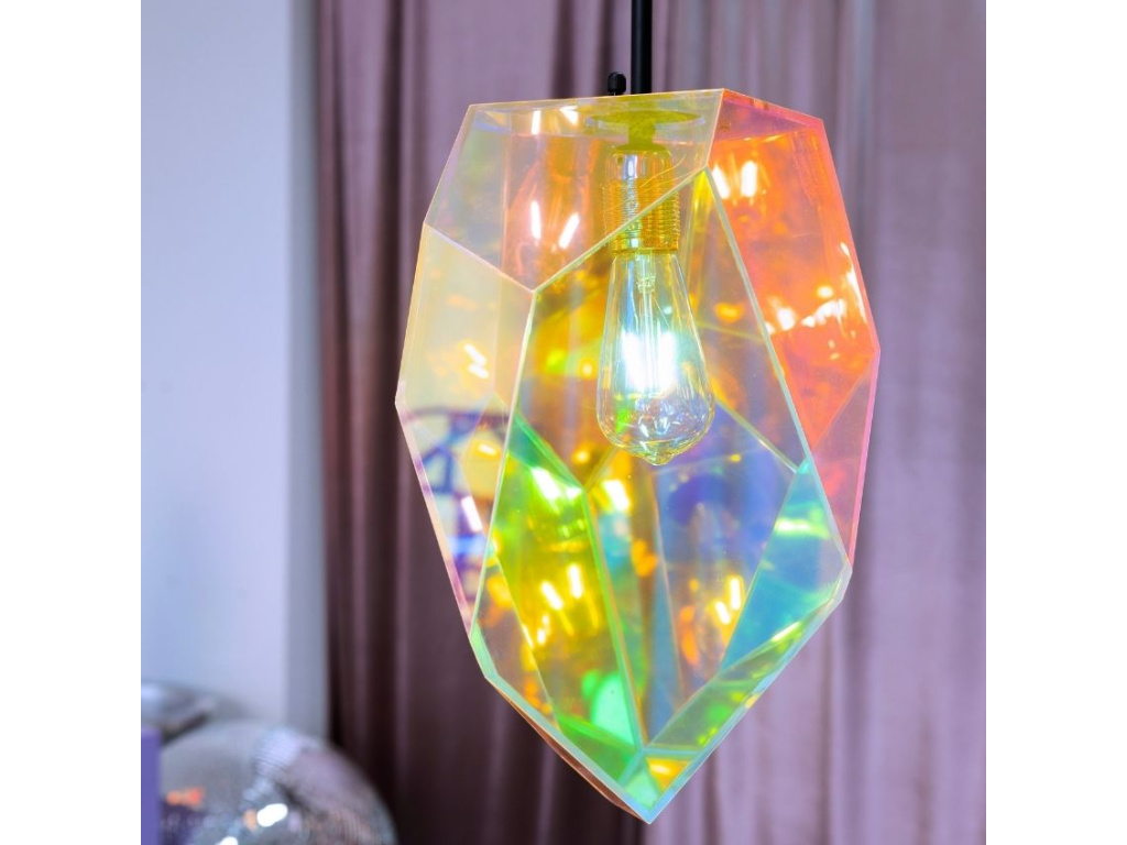 Naprosto nepřehlédnutelné. Tak by se jednoduše dalo popsat unikátní závěsné světlo Diamond Deer od značky Bold Monkey. Již při prvním pohledu si všimnete měnících se barev plastového stínidla, které způsobují úžasnou hru lámání světla a zrcadlení, což ve vás vyvolá příjemné pocity. Světlo je zavěšené na 130 cm dlouhém textilním kabelu s černě lakovaným kovovým zavěšením. Toto jedinečné světlo ve stylu art deco si najde místo u všech, kdo se nebojí lehce extravagantního designu. Objevte krásu duhových tónů světla ve společnosti světel ze série Diamond Deer.