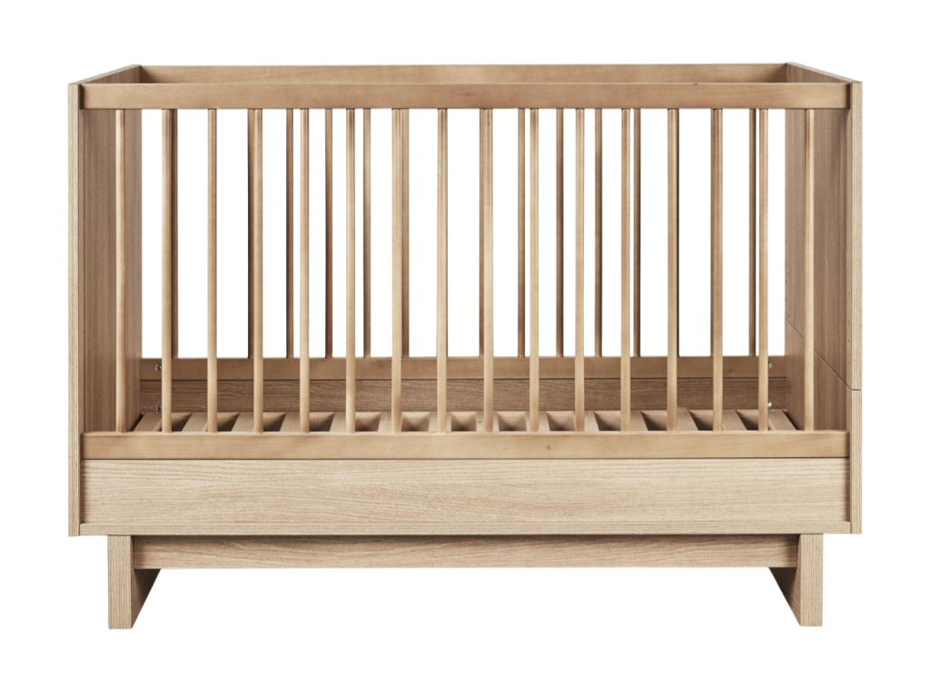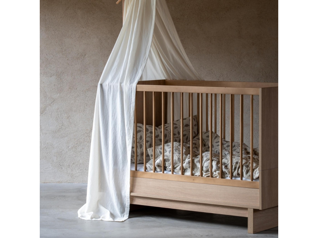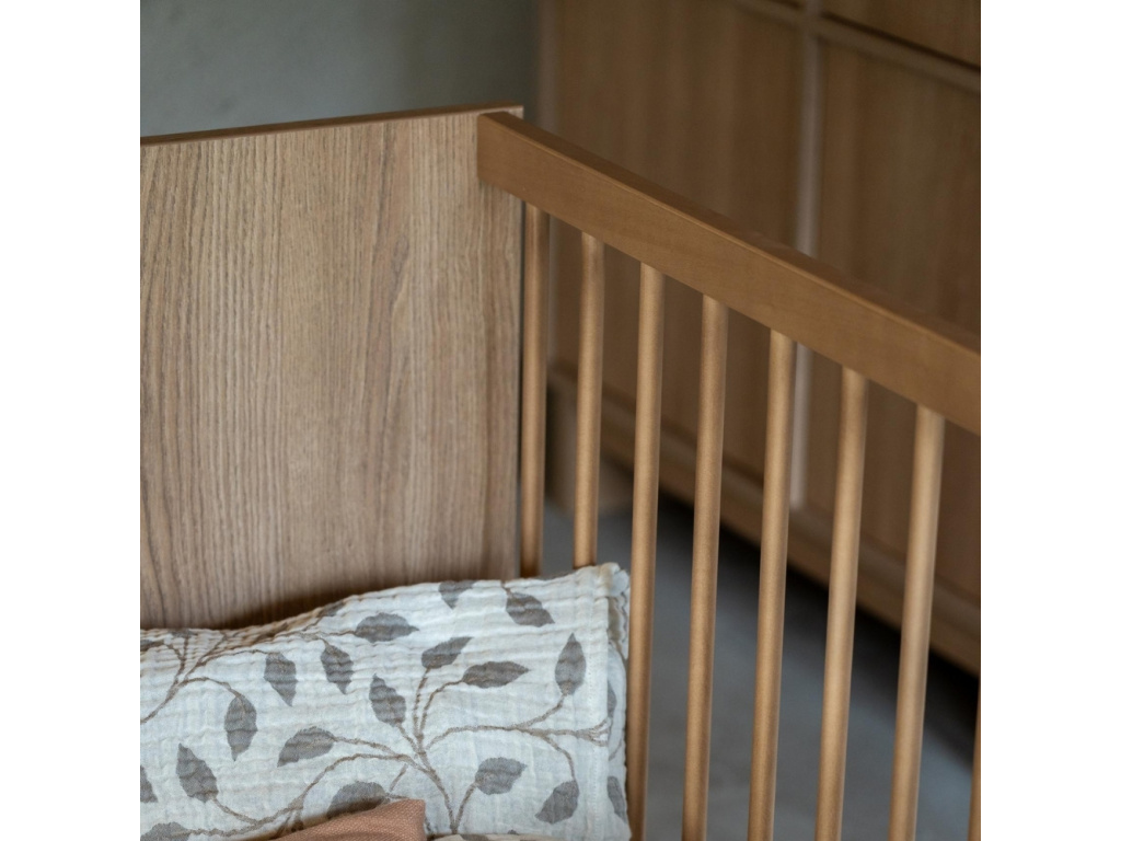Dětská postýlka Kyo vytvoří útulné a bezpečné místo pro klidný spánek miminka. Její čisté linie a teplé dřevěné tóny čerpají z nadčasové skandinávské jednoduchosti s japonským nádechem, takže krásně zapadne do moderních i minimalistických interiérů. Díky praktickému Junior Kitu ji snadno přeměníte na juniorskou postel 170 × 70 cm, která poskytne dítěti pohodlí až do přibližně deseti let. Součástí sady je i prodloužení roštu a malý noční stolek, který vše prakticky doplňuje.Bočnice jsou ošetřeny polyuretanovým lakem, jenž je pro děti zcela bezpečný a nezávadný. Konstrukce z kombinace dřevotřísky a masivního dřeva zaručuje stabilitu i dlouhou životnost. K údržbě stačí teplá voda a jemný přípravek bez škodlivých látek, což usnadňuje každodenní péči. Tento kousek tak nabízí elegantní a promyšlené řešení, které doprovází vaše dítě od prvních měsíců až po rané školní roky.