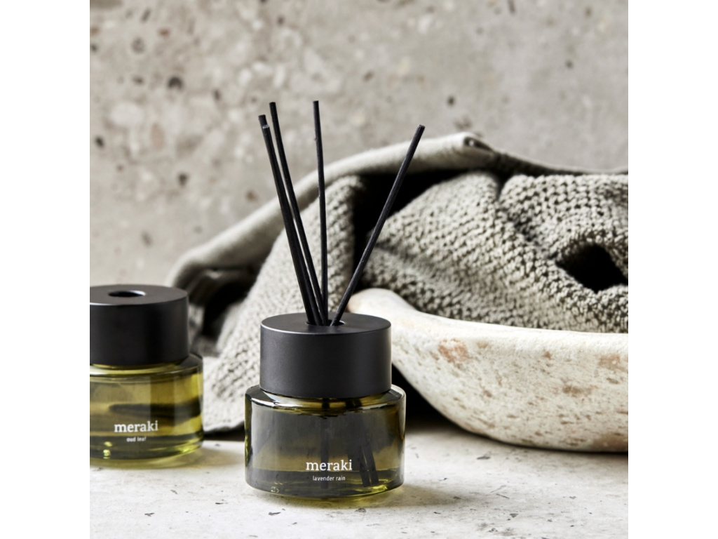 Difuzér Lavender Rain od značky Meraki je jako tichá procházka letní krajinou po dešti. Vůně levandule, jemná a uvolňující, se tu snoubí s osvěžujícími tóny čistoty a lehkého vánku. Výsledkem je harmonická kompozice, která navozuje pocit klidu, svěžesti a duševní rovnováhy. Minimalistický design skleněného flakonu a přírodní tyčinky krásně ladí s moderní i rustikální estetikou domova. Vůně se do prostoru uvolňuje pozvolna a nenásilně – ideální pro koupelnu, ložnici nebo jakýkoli kout, kde si přejete zpomalit a zhluboka se nadechnout. Lavender Rain je ideální volbou pro milovníky jemných, čistých a uklidňujících vůní.