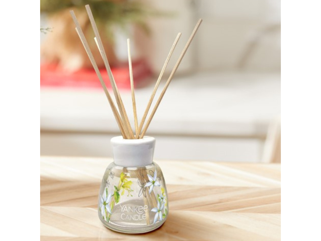 Udělejte si radost vonným difuzérem Midnight Jasmine od značky Yankee Candle. Tento difuzér vám díky objemu 100 ml zajistí až 10 týdnů krásné vůně, bezpečně a bez plamene. Umístěte ho do ložnice, předsíně nebo obývacího pokoje a nechte se omámit květinovou vůní růže, černého rybízu, jasmínu a pomeranče. V nabídce máme také náhradní tyčinky do difuzérů a několik druhů náplní – vyberte si tu pravou přesně pro vás!