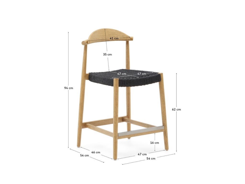 Dřevěná barová židle Kave Home Nina 62 cm s černým výpletem