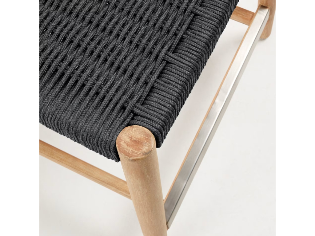 Designová barová židle Nina od značky Kave Home je krásným příkladem vintage stylu. Pohodlný pletený sedák v černé barvě je doplněný masivní podnoží z akátového dřeva, díky čemuž se v místnosti stane přírodním stylovým prvkem. Její povrch a lehký retro design dodají židli na osobitosti. Zkombinujte ji s ostatním nábytkem ze stejnojmenné kolekce a slaďte si tak váš prostor k dokonalosti. Židle bude skvělým doplňkem jak v moderních, tak i ve skandinávských nebo vintage interiérech.