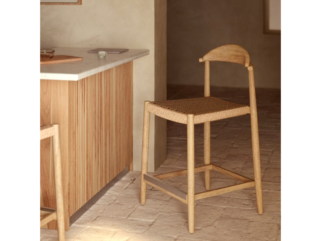 Podívám seDřevěná barová židle Kave Home Nina 62 cm s hnědým výpletem