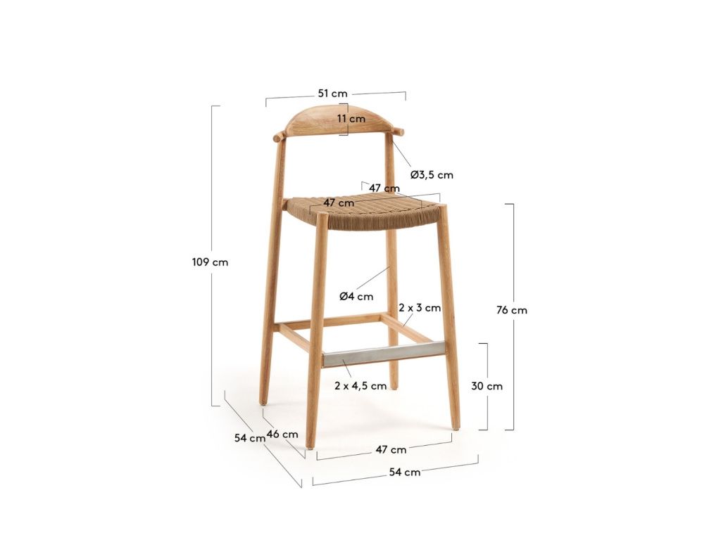 Dřevěná barová židle Kave Home Nina 76 cm s hnědým výpletem