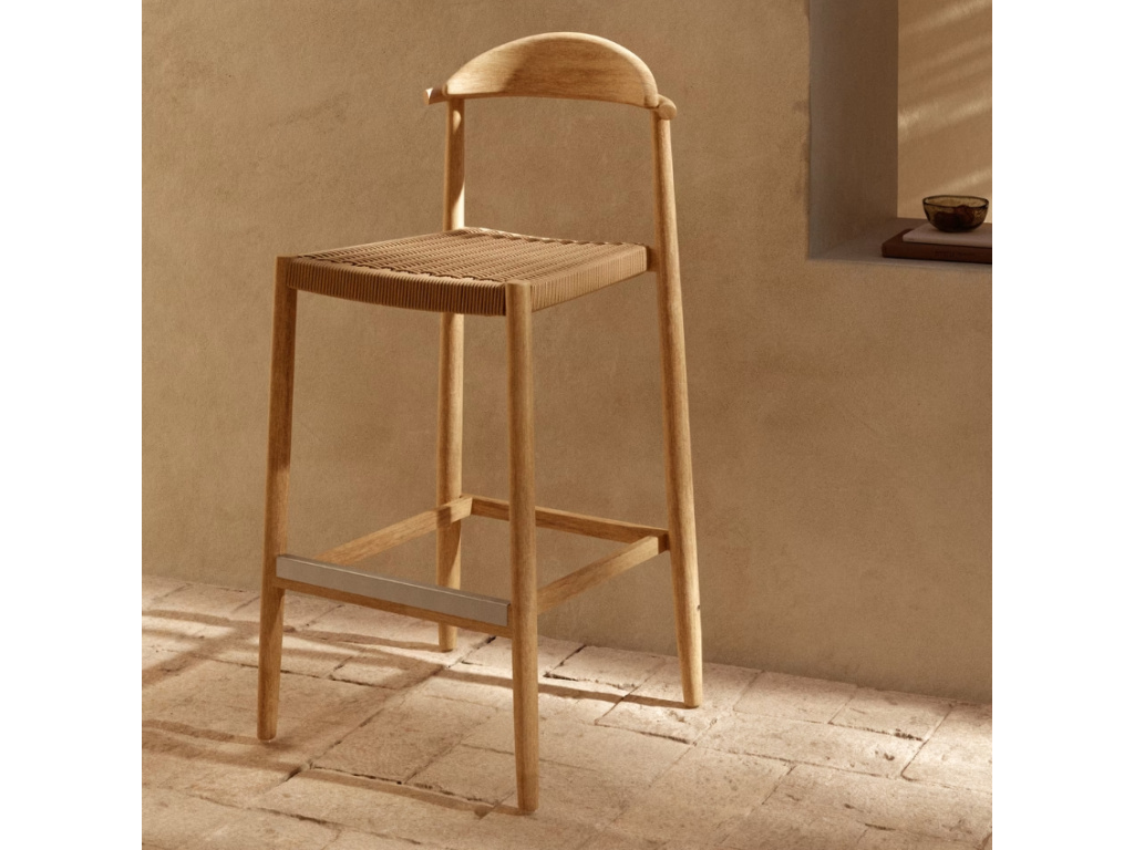 Podívám seDřevěná barová židle Kave Home Nina 76 cm s hnědým výpletem