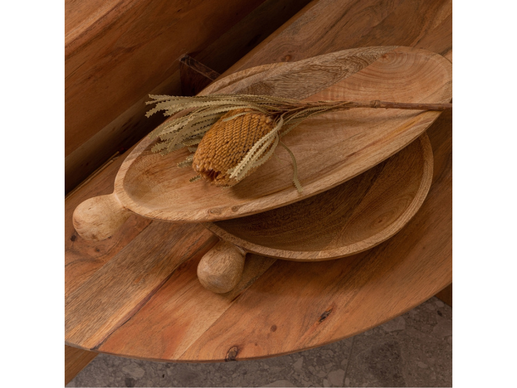 Potřebujete ozvláštnit skandinávský nebo rustikální interiér? Dřevěná dekorativní mísa Kaloto ho fantasticky doplní. Je vyrobena z mangového dřeva známým pro své teplé barvy a dlouhou životnost. Její robustní vzhled je doplněn viditelnou kresbou dřeva, díky čemuž se stane krásným přírodním prvkem ve vašem interiéru. Kromě toho, že vypadá osobitě a stylově, je také snadná na údržbu a díky hravým úchytkám lehce přenosná. Vyberte si ze dvou rozměrů a dolaďte tak svůj domov k dokonalosti.