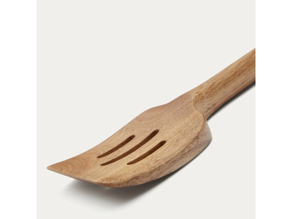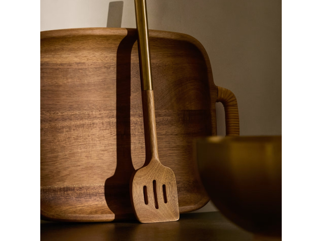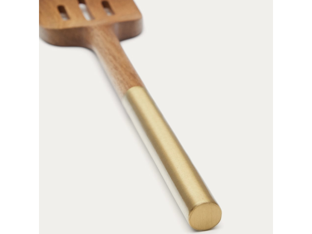 Vařečka Sataya pochází ze série kuchyňských pomůcek značky Kave Home, vyrobených z akátového dřeva. To je vkusně doplněno zlatě lakovaným kovovými detaily, díky které pomůcky získávají na zajímavosti a originalitě. Vybavte vaši kuchyň těmito elegantními kousky – zútulní jí a pomůžou vám s každodenním vařením a servírováním.