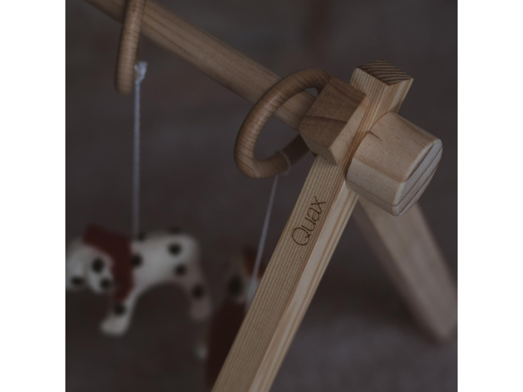 Dopřejte vašemu miminku chvilky zábavy ve společnosti hrazdičky Activity od značky Quax. Konstrukce je vyrobena z lehké a kvalitní překližky břízy a topolového dřeva. Připevněte na kroužky hračky dle vašeho výběru a sledujte, jak vaše dítě zaujmou různé barvy a tvary, které podporují rozvoj jeho smyslů. Ideální volbou je zkombinovat tuto hrazdičku se sadami závěsných hraček od značky Quax.