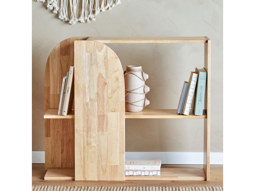 Dřevěná knihovna Bloomingville Alec se pyšní krásným minimalistickým designem s geometrickými tvary, které dodají svěží nádech každé moderní domácnosti. Knihovna je vyrobena ze kaučukového dřeva, které je charakteristické dlouhou životností a krásnou barvou s přirozenou strukturou dřeva. Knihovna může být umístěna u zdi pro uložení knih nebo například může sloužit jako předěl místnosti, kde jí budou slušet dekorativní předměty.