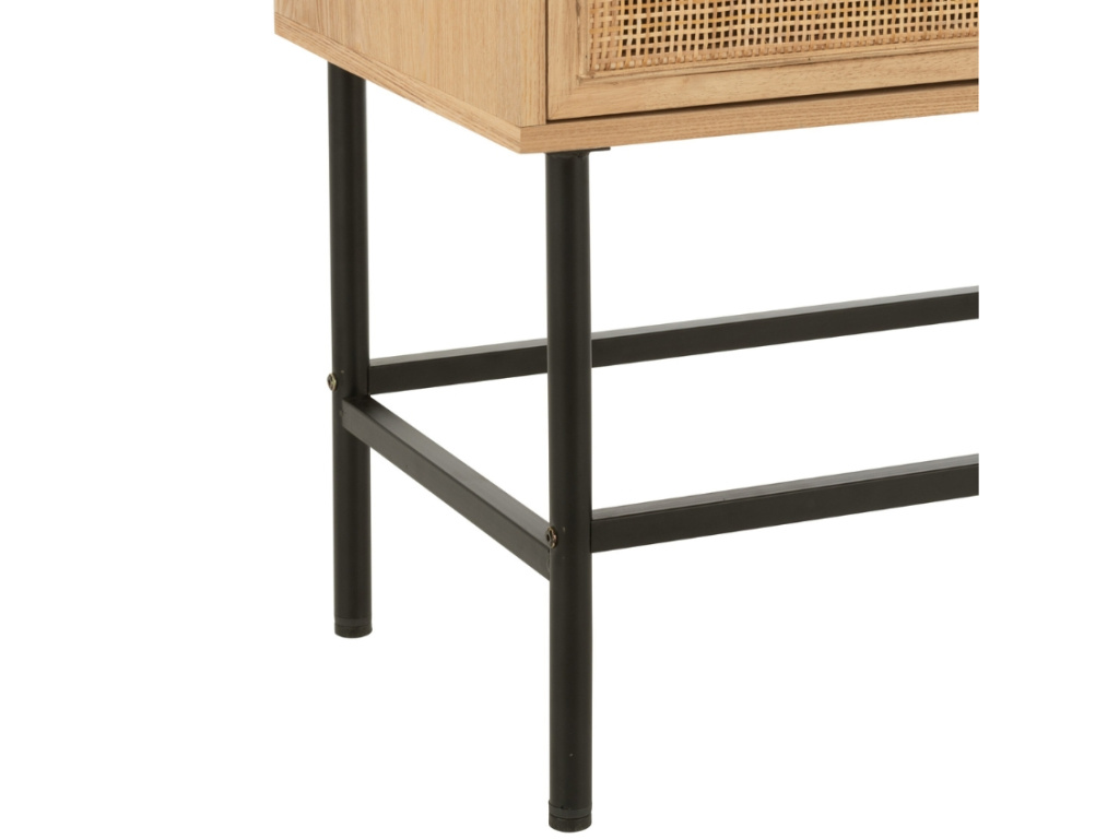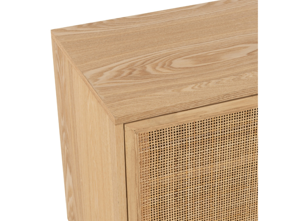 Retro komoda Square zaujme už na první pohled svým nadčasovým vzhledem. Dřevo v kombinaci se stylovým ratanem vytváří harmonii, která zútulní každý interiér. Skvěle se hodí do obývacího pokoje, předsíně i ložnice, kde nabídne nejen styl, ale i praktický úložný prostor v podobě pěti polic. Tento kousek je ideální volbou pro ty, kteří chtějí do svého domova vnést nádech přírody a elegance.
