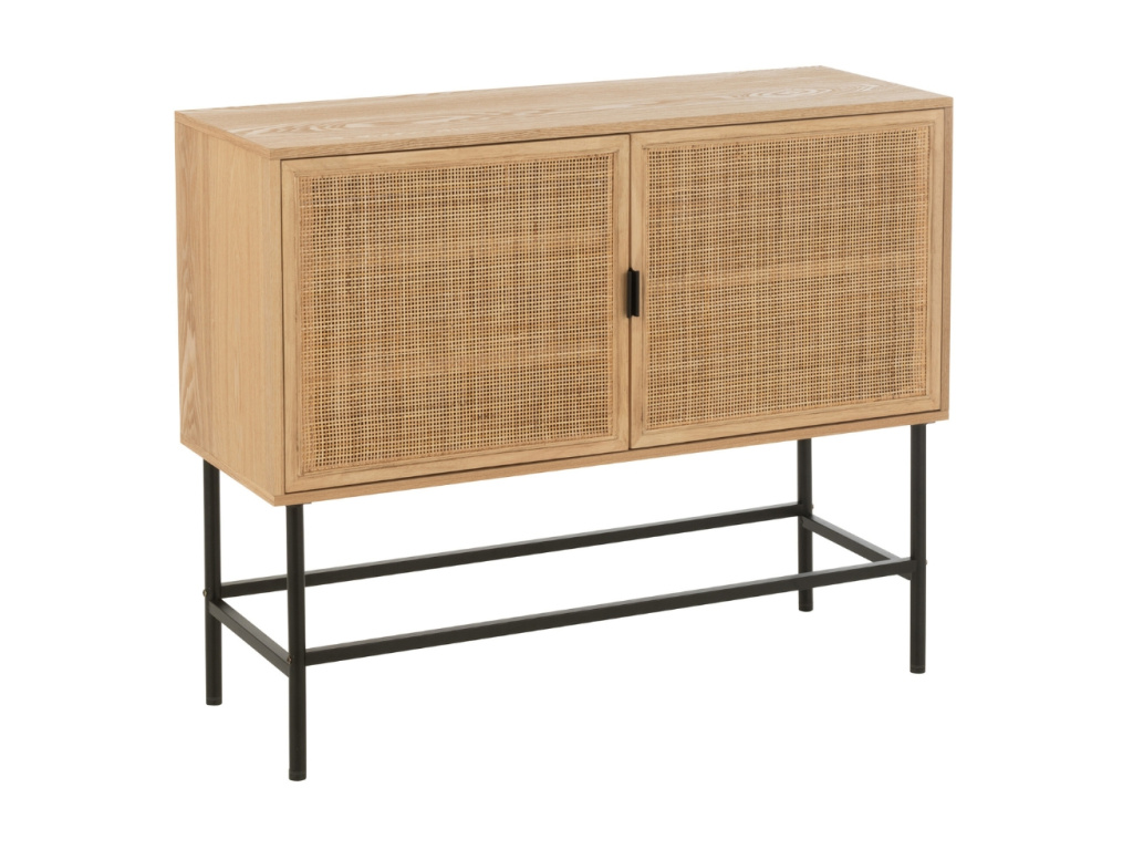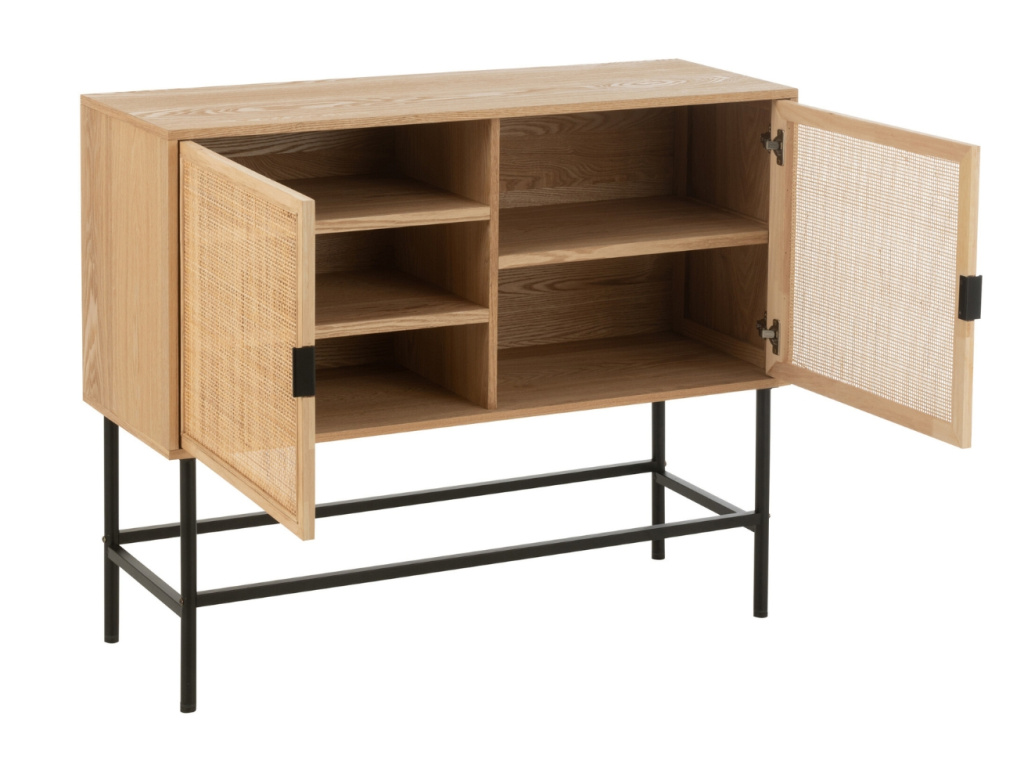 Retro komoda Square zaujme už na první pohled svým nadčasovým vzhledem. Dřevo v kombinaci se stylovým ratanem vytváří harmonii, která zútulní každý interiér. Skvěle se hodí do obývacího pokoje, předsíně i ložnice, kde nabídne nejen styl, ale i praktický úložný prostor v podobě pěti polic. Tento kousek je ideální volbou pro ty, kteří chtějí do svého domova vnést nádech přírody a elegance.