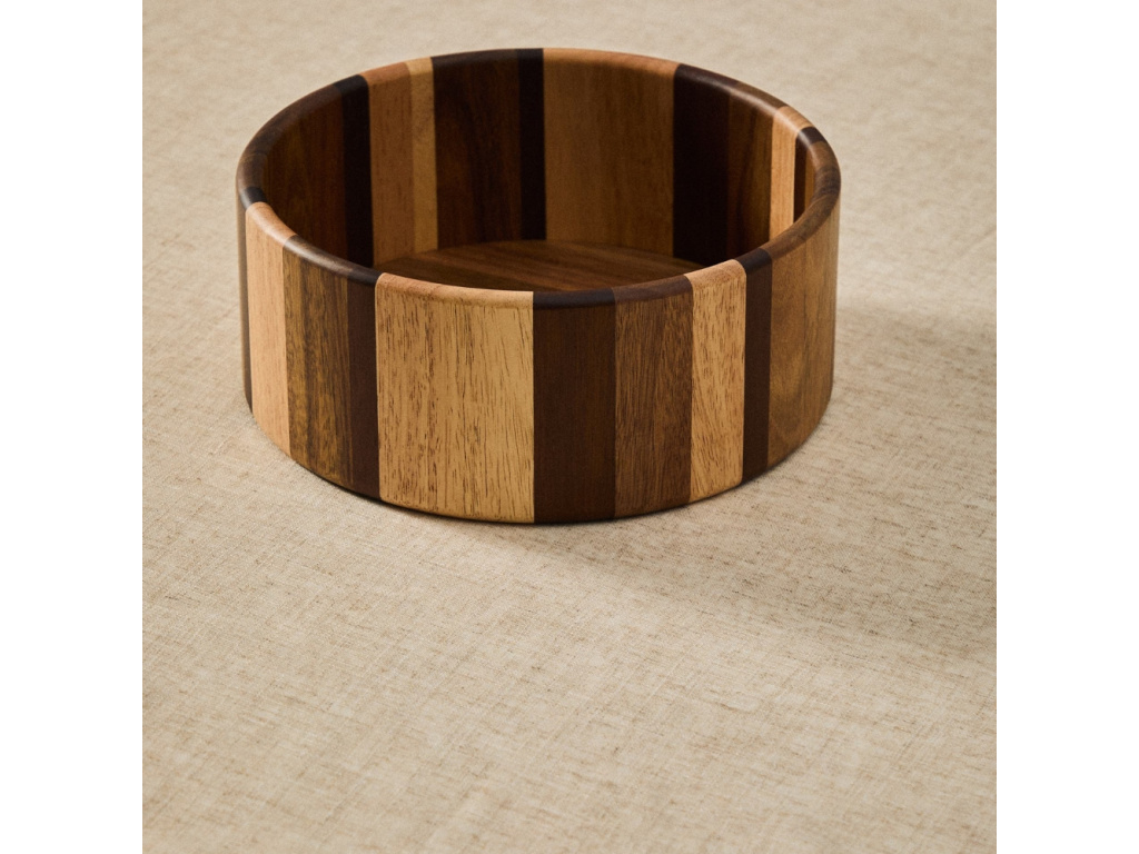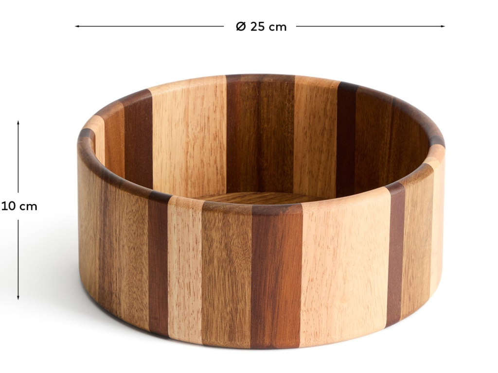 Dřevěná mísa Nover je oslavou přírodní rozmanitosti, v níž se harmonicky potkává akátové dřevo s dalšími ušlechtilými dřevinami. Díky originální technice skládání různých odstínů a kreseb vzniká unikátní kontrast, který z každého kusu činí neopakovatelné umělecké dílo. Tato mísa není jen praktickým pomocníkem, ale především výrazným designovým prvkem, který vnese do vaší kuchyně či jídelny hřejivou atmosféru a dotek moderního řemesla.